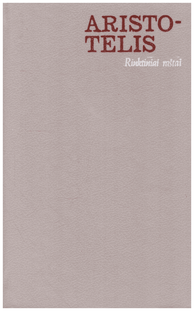 Vieno žymiausių Antikos filosofų Aristotelio (384-322 m. pr. m. e.) raštų rinkinyje spausdinami keturi traktatai („Kategorijos“, „Nikomacho etika“, „Poetika“, “Apie sielą”), reprezentuojantys šio filosofo logiką, etiką ir psichologiją.