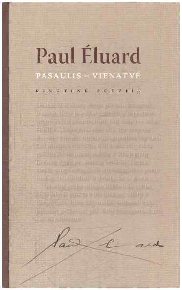 Paulis Éluard’as (1895–1952) – vienas garsiausių XX a. prancūzų poetų, siurrealistas, humanistas, politinio eilėraščio meistras ir subtilus meilės lyrikas. Šią poezijos rinktinę sudarė ir iš prancūzų kalbos išvertė daugelį metų poeto kūrybą tyrinėjęs vertėjas Juozas Meškauskas-Meškela. Dauguma eilėraščių lietuviškai skelbiami pirmą kartą.